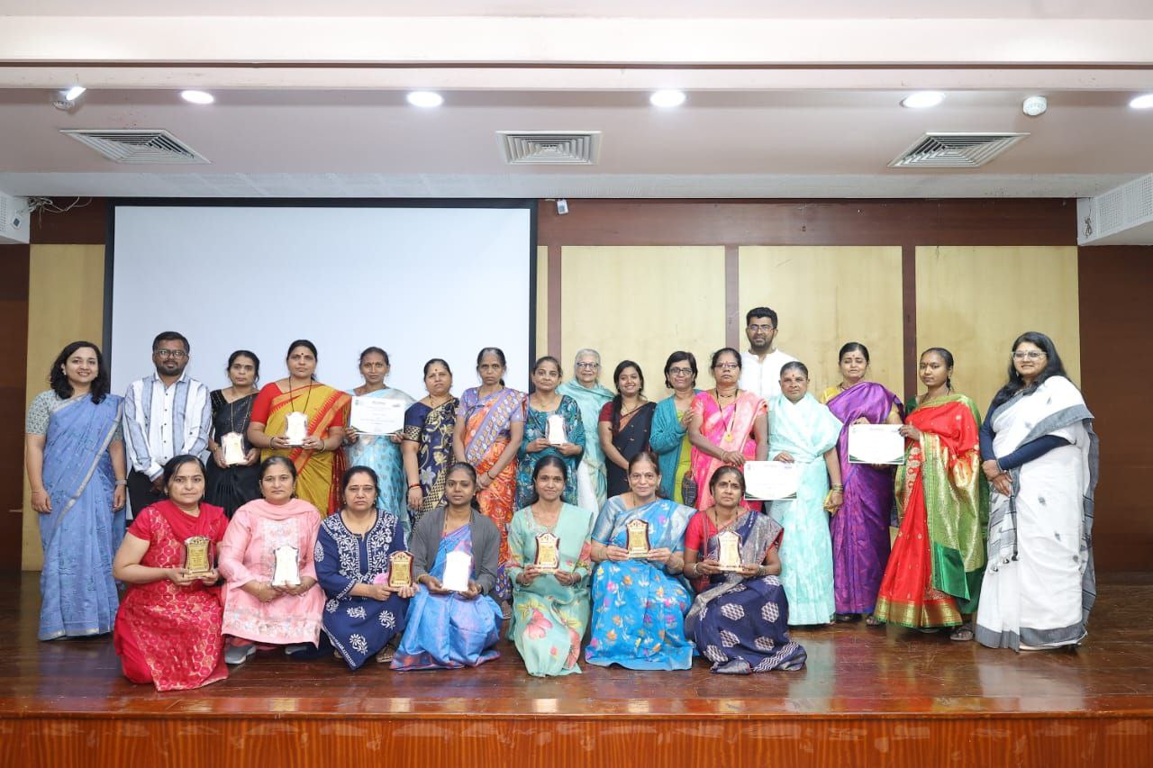 On January 17, 2026, at Neetu Mandke I.M.A. House in Pune, BELIEF organized a felicitation ceremony for Anganwadi workers who wholeheartedly participated in the Shakti project. For the past three years, BELIEF has been implementing Shakti, a child education empowerment program, in the Anganwadis of Mundhwa and Hadapsar in Pune. The event was held to appreciate the participating Anganwadi workers, and to present the program’s effectiveness, experiences, and challenges. Chief guests Shubhada Joshi (Trustee, Palakneeti Parivar and Director, Khelghar, Pune) and Hema Honwad (child activist and senior educationist) honored the Anganwadi workers with mementos and certificates of appreciation.